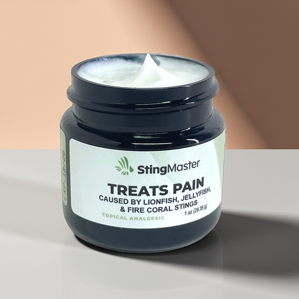 StingMaster is an OTC topical ointment that blocks the pain caused by lionfish venom at the source.